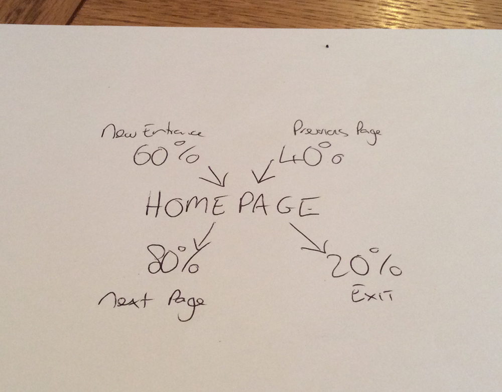 Google Analytics, in particular, navigation summary and entrance pages, can paint this picture and this is were we will get the data from. The key though is to present this out of GA, strip the data of terminology and focus on what’s important.