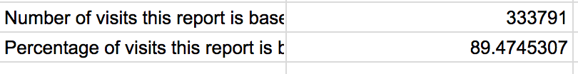 As per Google Analytics sampling kicks in when dealing with a lot of data or refined data. Same applies to the Google Analytics add-on. You can leave it blank or you can enter “DEFAULT,” “FASTER,” or “HIGHER_PRECISION”. My experience is that google sheets automatically goes for the higher precision. The way to tell is to look at the reports for the line “Percentage of visits this report is based on”. Examples below show the matching figures in Google Sheets and Google Analytics. So if ever your data isn’t matching first port of call is to look at your sampling in both solutions. They probably don’t match.