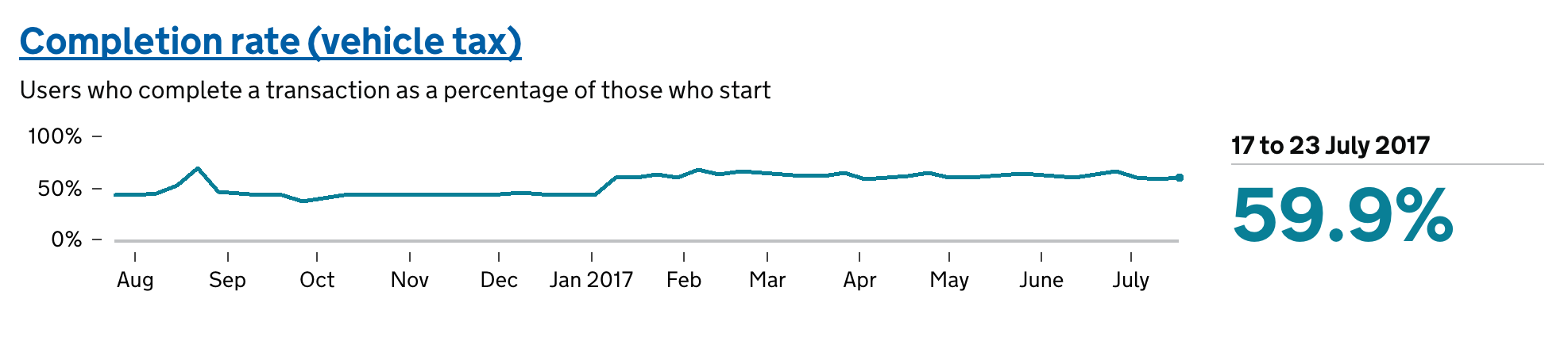 Now we know the time to complete a task, lets back this up with the completion rate per said task. Now we have real engagement detail. We will now know did the user compete the task, how long it took them to compete the task and variables in-between (such as where they stopped in the task or where they spent the longest time). We can also use this metric to derive a “cost per transaction” showing stakeholders a much loved monetary figure demonstrating service value, more of which…