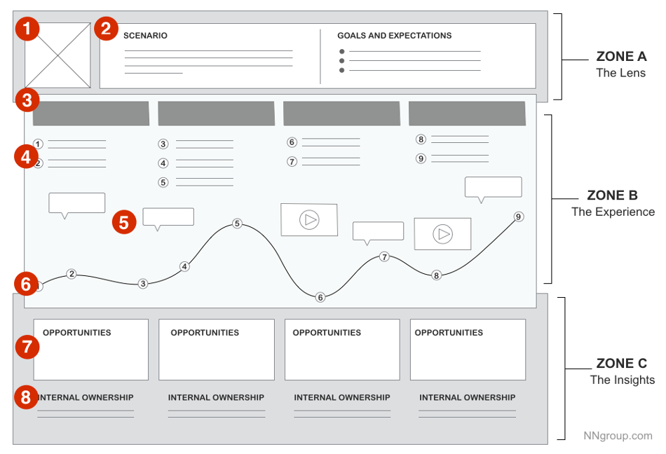 Let’s start at the beginning. Your first step is to create a journey map (NNG). To do this, look at the key journeys’ for your service. Take note and map the interactions, the decisions, the pain points, the drop offs and the exits.
